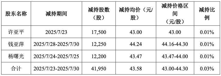 另外,春雨欣投资在2025年6月23日至24日通过集中竞价交易方式合计减持华亚智能股份24.7万股,占公司总股本的0.19%;陆巧英在5月28日通过大宗交易方式合计转让华亚智能股份94.06万股,占公司总股本的0.99%。本次减持后,陆巧英直接持有的华亚智能股份比例由1.81%降至0.82%。