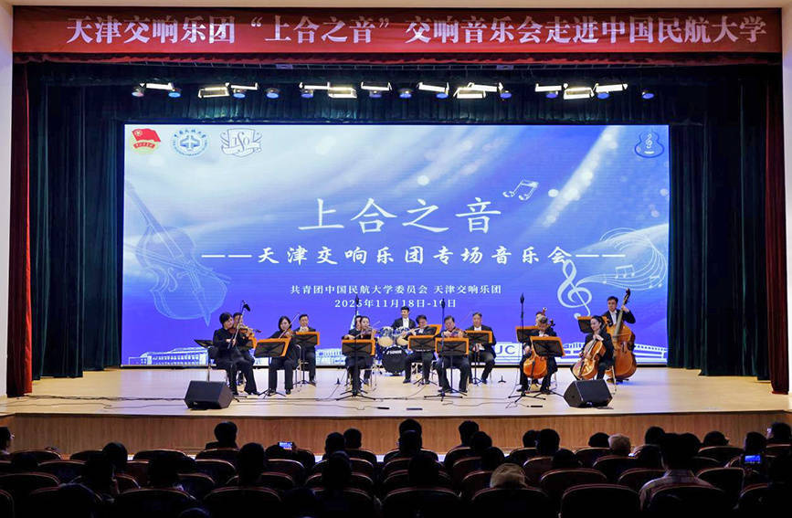 11月18日至19日,天津交响乐团“上合之音”交响音乐会走进中国民航大学东丽校区北区礼堂,为师生上演了一场震撼心灵的高雅艺术盛宴、一次深层次的文化对话与情感共鸣。