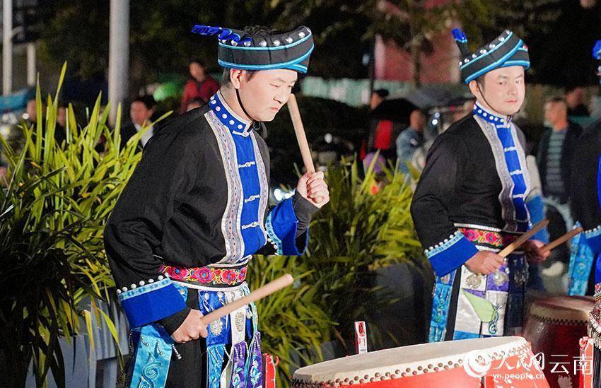 尽管天气微寒,当壮族铜鼓舞的鼓点叩响夜空时,随着烟花绽放,气氛被点燃。街道中央,可谓一步一景,各式精彩表演依次上演,市民驻足观看。街道两旁,小店里烟火升腾,空气中交织着各式美食的香气,有五彩斑斓的花糯饭、滋滋冒油的煎粽子、香气扑鼻的甜米酒汤圆……夜间消费潜力就此被激活。