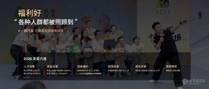 更具突破性的是,小鹏汽车将于2026年推出"六大关爱基金"组合,覆盖生育支持、人才培育、退休保障、助残关怀、退役军人优待及离职员工购车权益。其中生育基金累计发放已突破370万元,精准触达员工关键人生节点。秉承"一日鹏友,终身为朋"的理念,离职员工仍可享受专属购车优惠,以开放姿态延续情感联结。